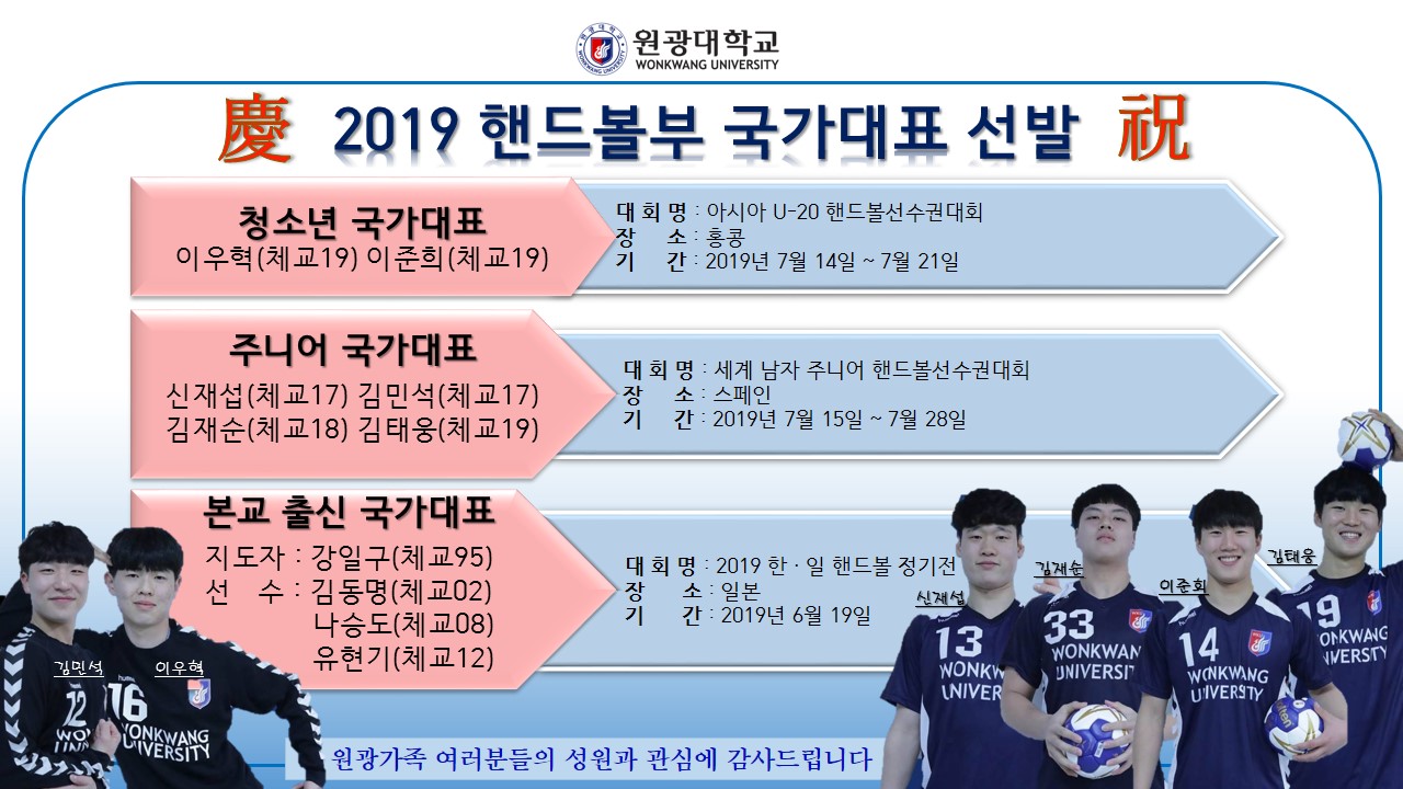 – 2019 원광대 핸드볼부 국가대표 선발 –